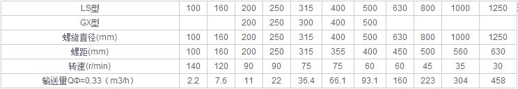 LS\GX型螺旋輸送機(jī)技術(shù)參數(shù)表: