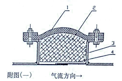 非金屬補(bǔ)償器是由:(1)非金屬?gòu)?fù)合圈帶 (2)隔熱填料層 (3)機(jī)架 (4)不銹鋼絲網(wǎng)等組成。見(jiàn)附圖(一)。